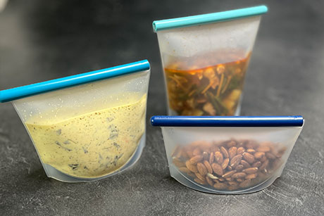 Saladmaster Silicone Bags are the best alternative to single-use plastic food containers, especially designed for leak-proof storage. It comes in three different sizes for all your food storage needs: