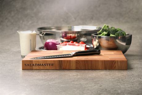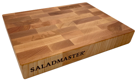 This beautiful board is wonderfully crafted with safe forestry certified maple wood. The end grain construction is particularly special due to its special ability to self heal making it easier on your Saladmaster knives and showing less wear and tear over time. The striking grains also serve as a statement piece within your kitchen.